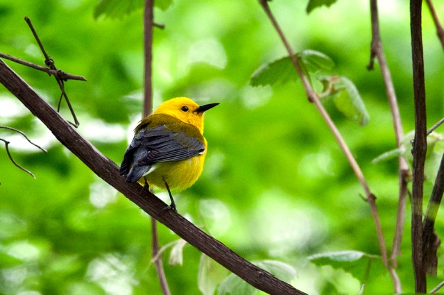 Besides seeing the many flowering trees at Leesylvania State Park this weekend, as I posted last night, we saw a bright yellow prothonotary  warbler. Another photo of this beautiful bird follows (300mm, f9, 1/200, ISO 200).