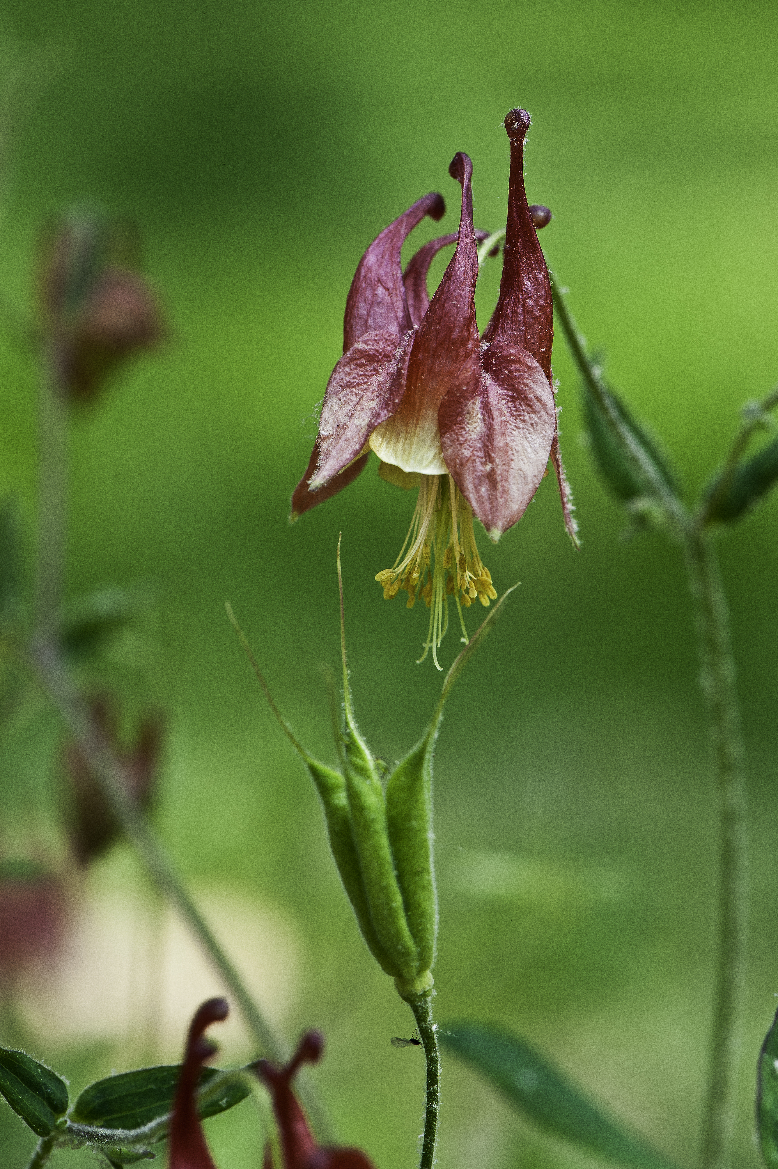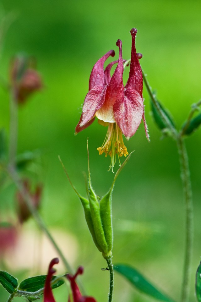 The top one is an Iris and the bottom one is Red Columbine. Not sure about the middle 2.