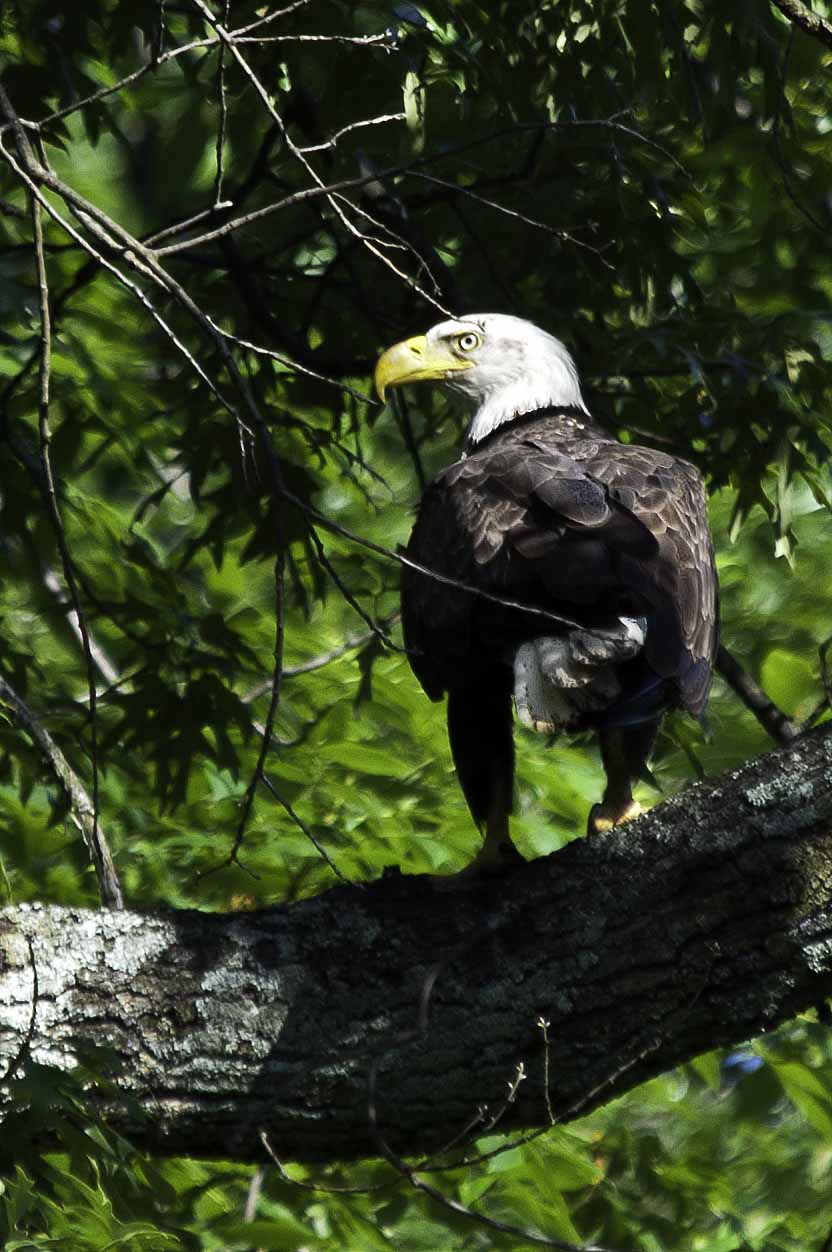 To “spice up” this article, below is photograph that I shot yesterday at Leesylvania State Park of an eagle that was high up in a tree that I noticed as I was leaving the park. Naturally, I slammed on my breaks, whipped the car around, parked (poorly), grabbed my camera, and was fortuante enough to take a few shots before the eagle got nervous about me and flew off.  I will be posting a more complete article later today with more eagle photos, as well as some sunrise photos.