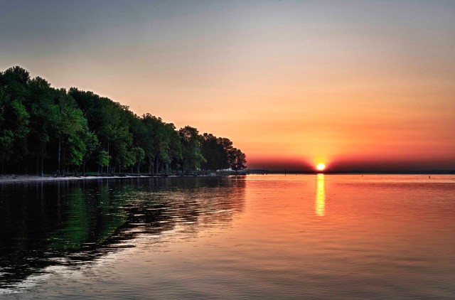 Saturday morning, I left the house at 5:30 AM to go to Leesylvania State Park to photograph the sunrise on the Potomac River. As I approached the park, I was disappointed because there were no clouds in the sky. Clouds often make a tremendous difference in sunrise photographs. However, as I approached the Potomac shoreline, I could see the sky turning gorgeous shades of red, orange and yellow where the sun was coming over the horizon.  As the sun continued to rise, the colors intensified and became more and more vibrant, as well as forming a beautiful reflection in the river. As it turned out, it was a very beautiful sunrise without the clouds. Just about every sunrise is beautiful and worth witnessing–some are just more spectacular than others. Below are a couple of the sunrise photographs (HDRs, D700, 24mm & 55mm, f/16, ISO 200).