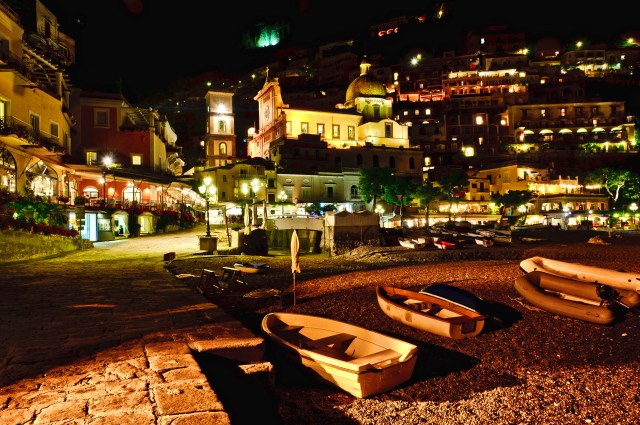 Since my iPhone photos told the story of the tour, I have decided to post an article each evening for the next week or two with one photograph that I shot with my Nikon camera that provides more than the moment, but also the light, and better depicts the breathtaking beauty of Italy. Below is one of those images. It was shot on one of the evenings in Positano after most people had ended the night. The dark, course sand on the beach and the boats, buildings and one of the town’s churches were lit by the evening lights of the small town nestled into the side of a mountain. I went out with my Nikon camera and tripod, while most slept, and captured the very quiet evening, which was quite a contrast to the daytime when the town and beach were busy with tourists and locals. (Click on the image to see it in full scene, and then click on it again to zoom in.)