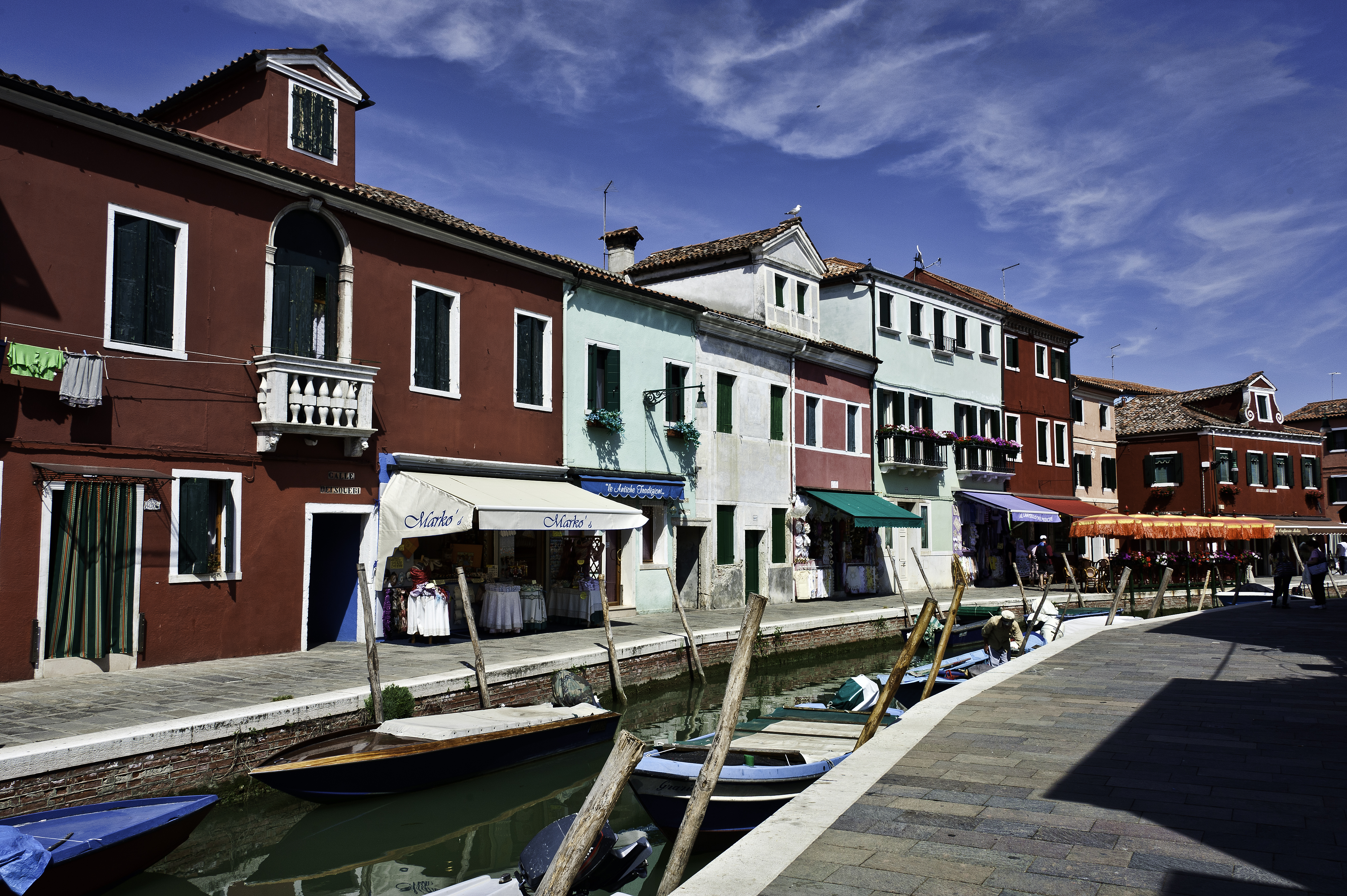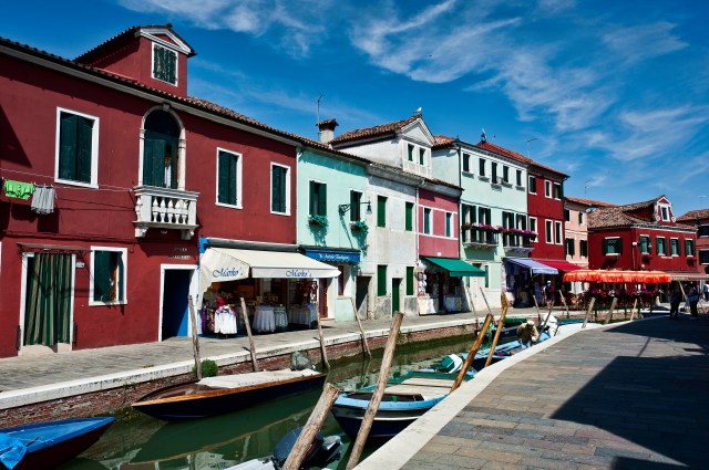 Burano is also known for its lace. However, it was not the lace that attracted me to the island. It was the colorful buildings. A typical canal and pedestrian street was captured in the below photo. (Nikon D700, 28mm, f14, 1/250, ISO 200)