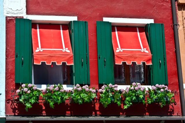 Many of the buildings on Burano, as well as in Venice and throughout Italy, had very photographic windows–photographic for many reasons, such as colors, flowers, shape or age. The windows in Burano were simpler, but still photographic! Below are two examples. (First photo: Nikon D700, 98mm, f11, 1/320, ISO 200; second photo: D700, 122mm, f9, 1/500, ISO 200)