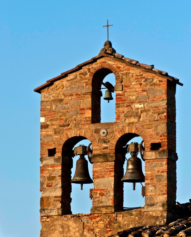 While in Tuscany, we stayed at the iL Casale, located in San Pietro a Cegliolo, which is 3km from Cortona. When traveling through San Pietro a Cegliolo on the first day, the bell tower of an old church about a quarter mile off the main road caught my eye. I could imagine it illuminated by the early morning sun, and knew it had potential for a great photograph. I, therefore, quickly took notice of its specific location.