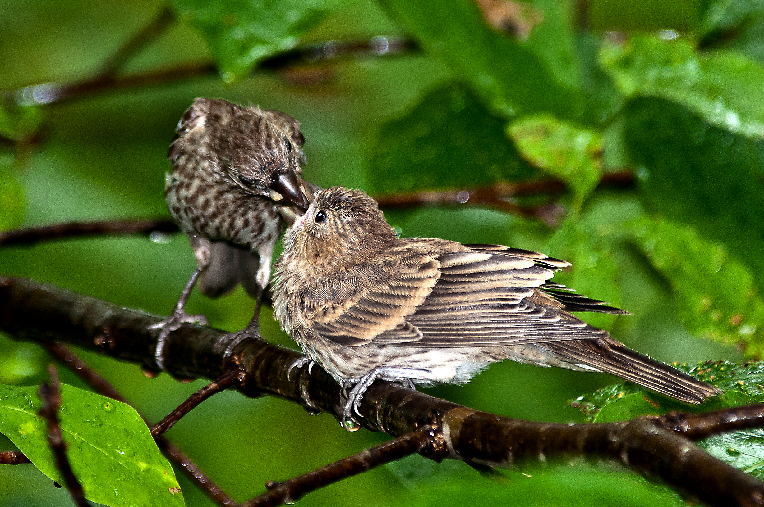Hopefully, you made it to the bottom of this article to see the above photograph. Although I captured some good hummingbird and other bird photos yesterday, the above image is my favorite. It is a female House Finch feeding her fledgling.