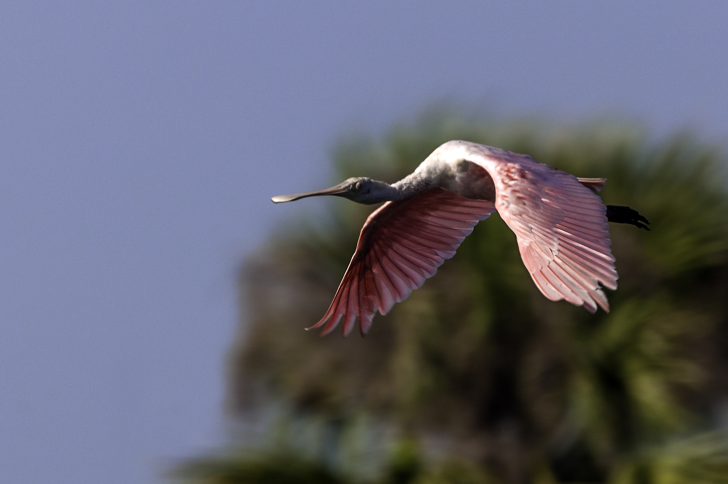 Roseate Spoonbills were hunted to near extinction because their pink primary feathers were sought after by hunters for use in the construction of ladies’ fans in the late 1800s and early 1900s. By 1930, there were only 30-40 breeding pairs in Florida. Today, because they were banned from hunting, they have rebounded, and there are over 1,000 breeding pairs in Florida.