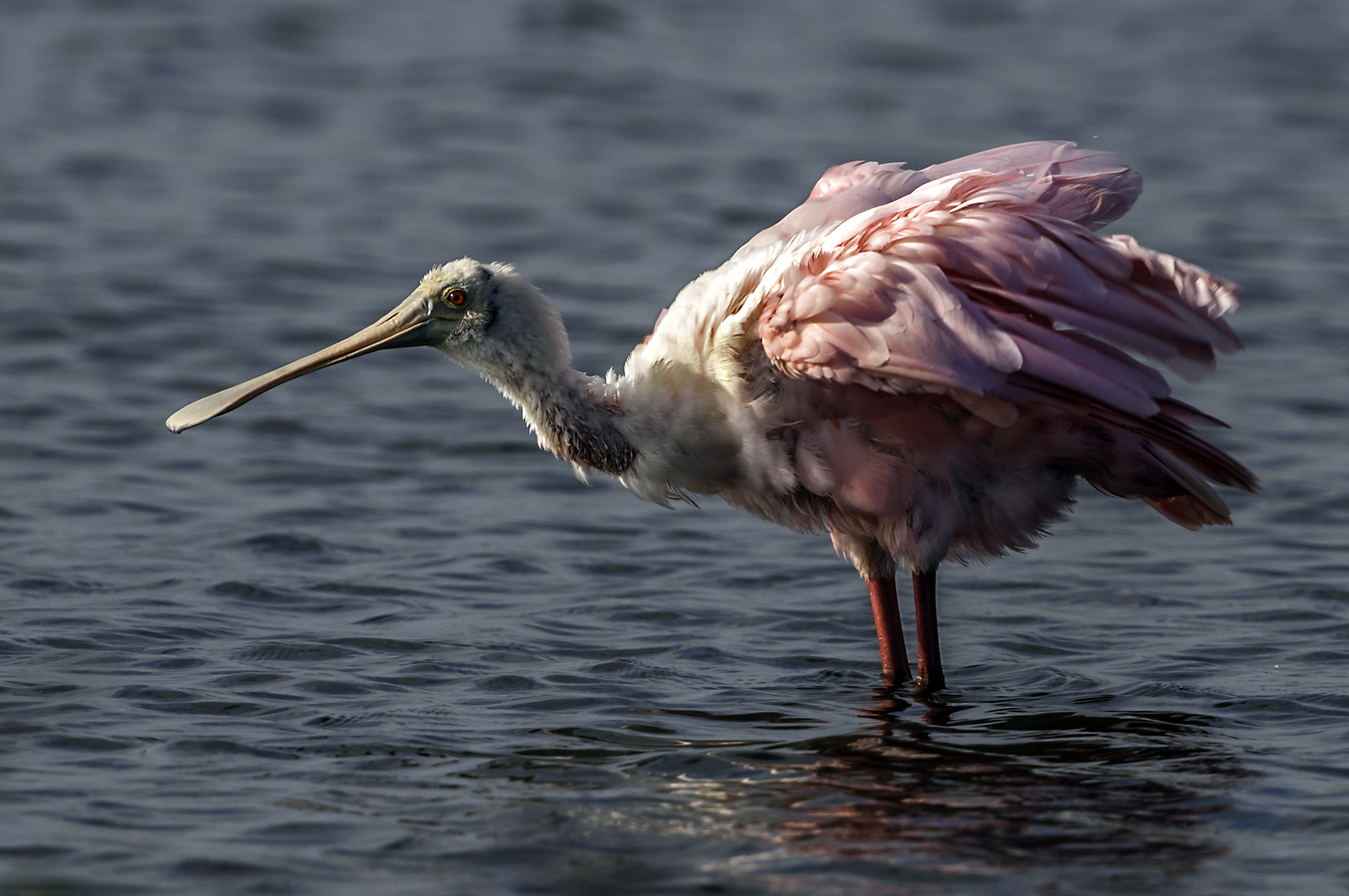 My favorite image of this spoonbill is below with its feathers ruffled out. Double click on the image to see it in more detail.