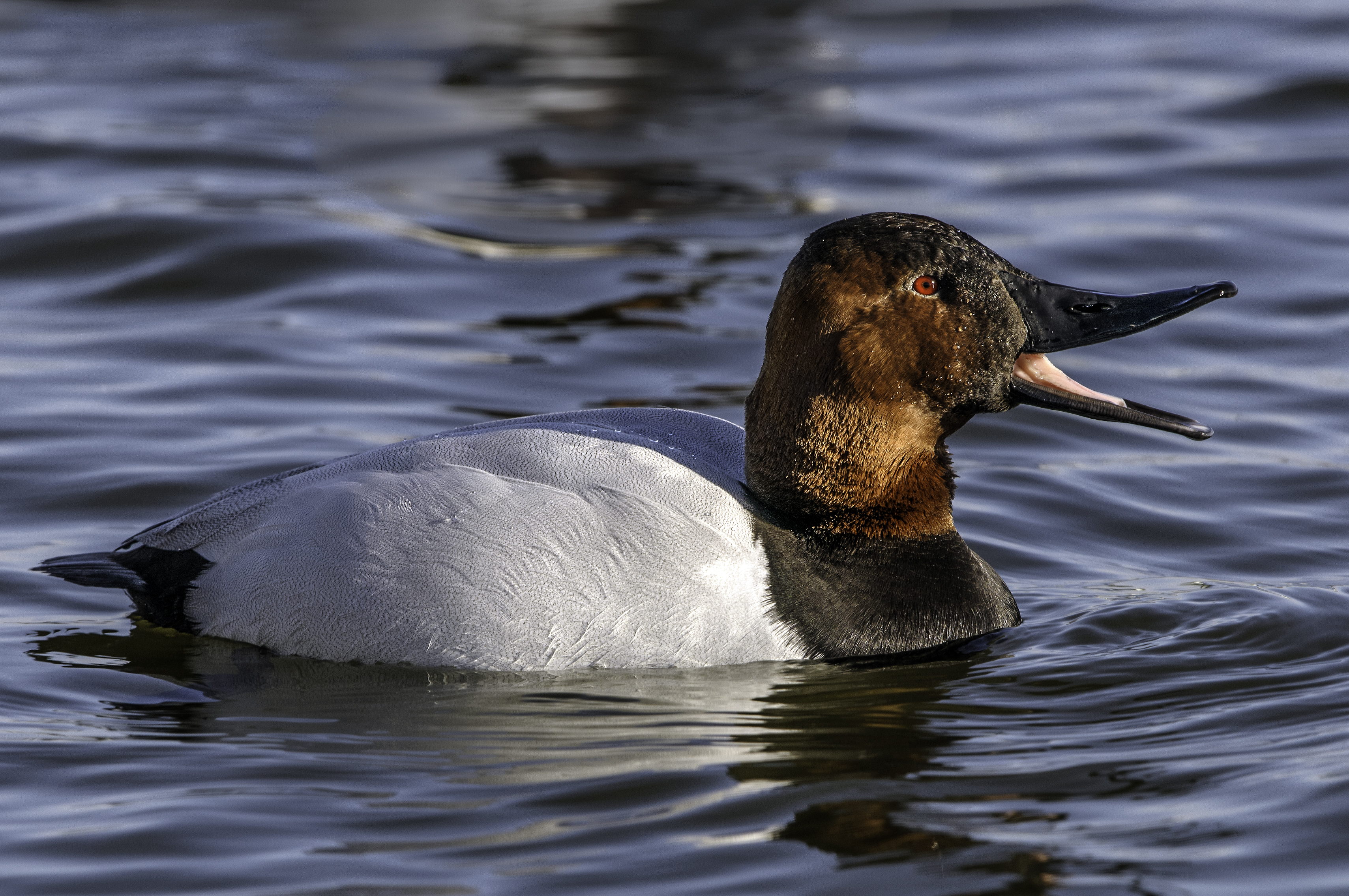 If you read my blog article from a couple days ago, you know that on January 29 I had a very successful trip to Cambridge, Maryland, to photograph ducks. In that article, I posted images of 2 of the 6 species of ducks that I photographed on the Choptank River. In this article, I am including the other 4 species:  Canvasbacks (above image), Lesser Scaups, Ring-necks, and a Redhead.