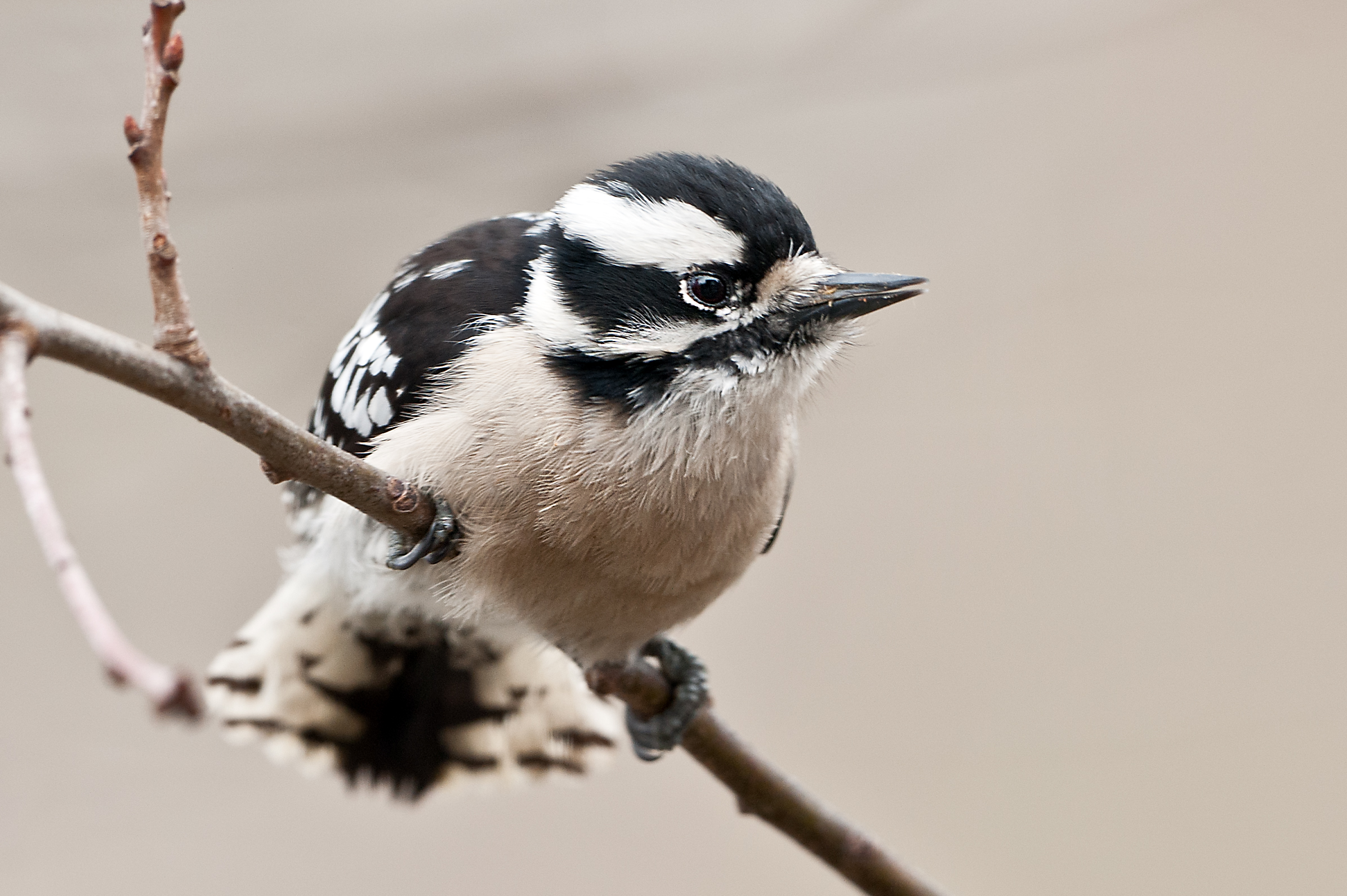 The following two images are of a Downy Woodpecker. The first is a female and the second a male. They are distinguishable by the red feathers on the back of the male’s head.