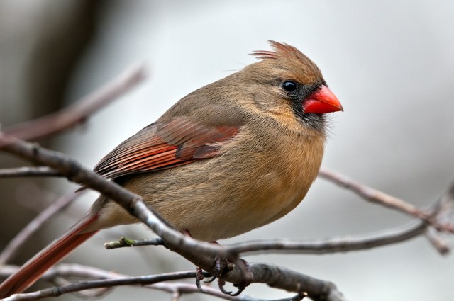 In the above image, the sun was low in the sky and its warm glow beautifully lit this male Cardinal as it sat on a branch. Below are two female Cardinals.