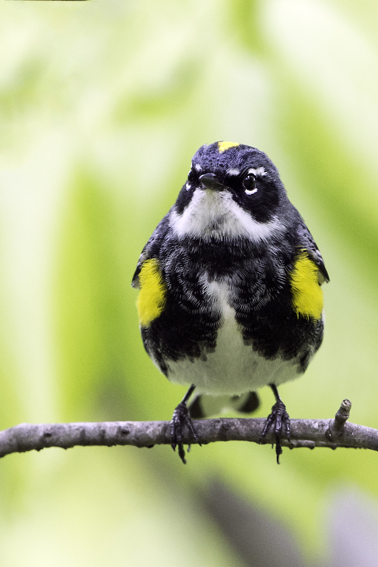The next two images are of a Yellow-rumped Warbler. It was very difficult to photograph the warblers, and in particular the Yellow-rumped Warbler, because they were constantly on the move, fluttering around the trees looking for prey. However, this Yellow-rumped Warbler sat still just long enough for me to get a couple of good photographs. I included both so the bright yellow stripes on its wings and on the top of its head can be seen. It gets its name because it has a yellow patch on its back above its tail, which cannot be seen in these images.