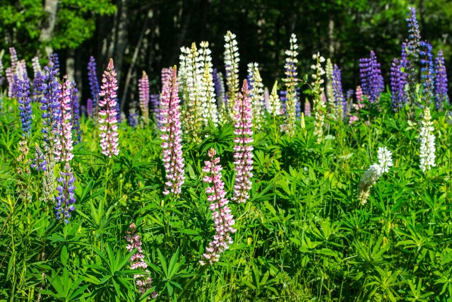In addition to the above wildflowers, there were many Lupines growing in small and large groups along roads, in open fields and around people’s homes. They are predominantly purple, but there are also some pink and white Lupines, with white being the least common. Lupines do not grow in Virginia, or at least I have never seen any. They were beautiful and were amazingly striking when lit by the sun. I photographed Lupines many times while in Maine. Some of those images follow.