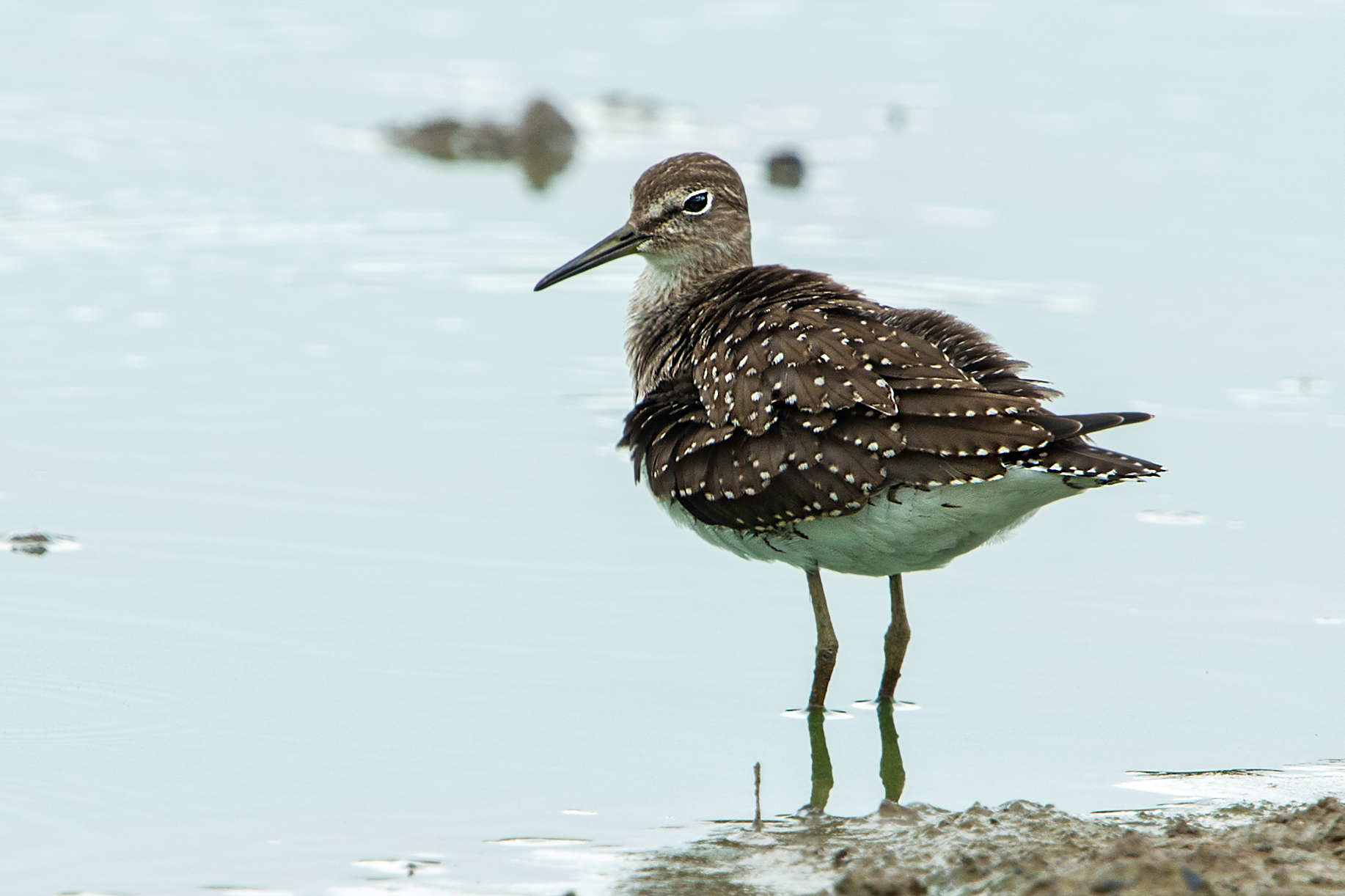 Below is a Sandpiper, which is an active shorebird that is typically seen moving quickly along shorelines in shallow water looking for food.