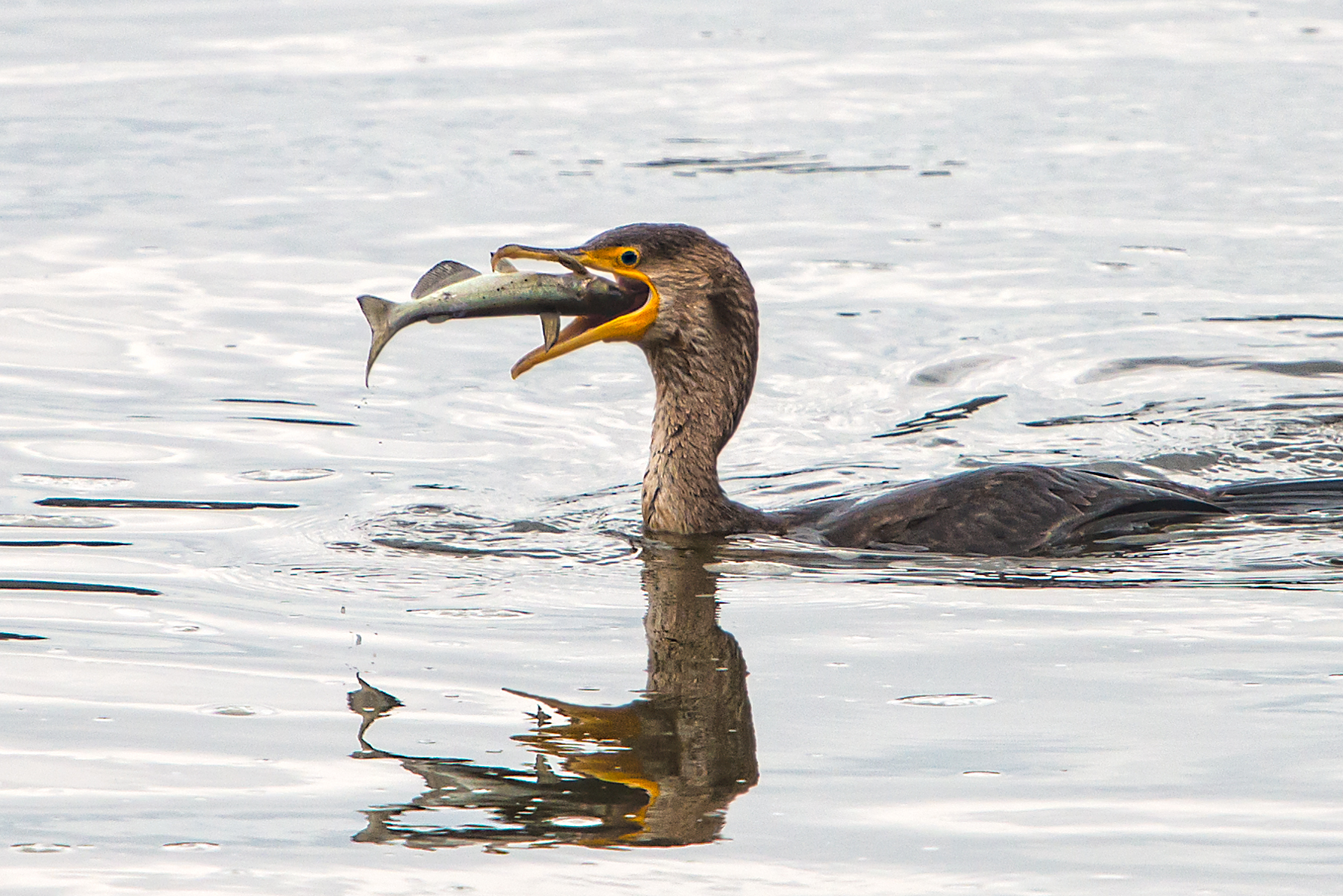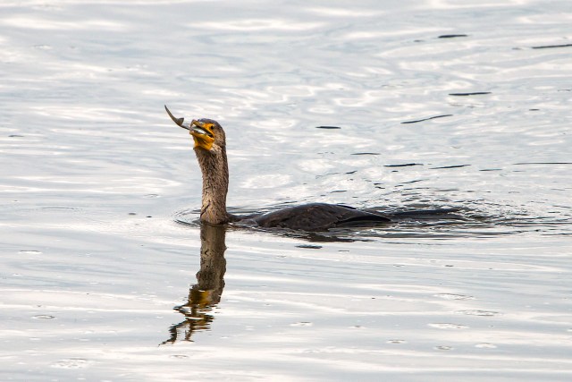 The Cormorant worked the fish around until properly positioned for head-first swallowing.