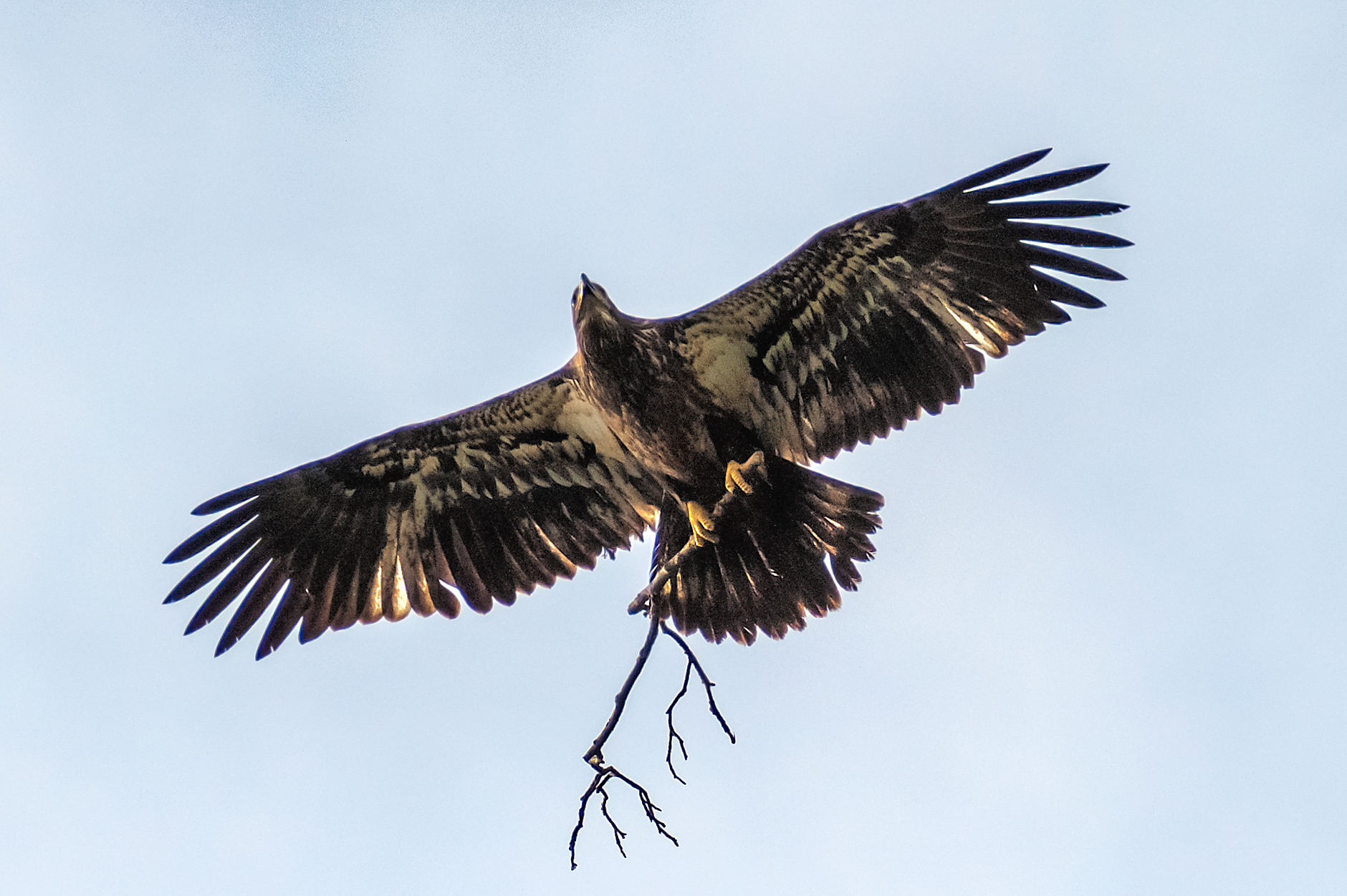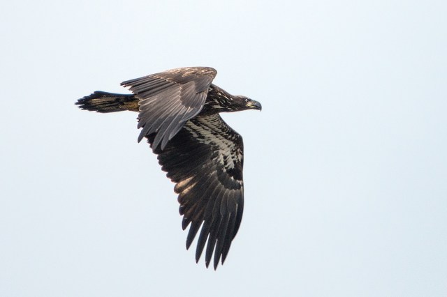 Besides adult American Bald Eagles, there were many juvenile eagles flying around the dam and river. Juvenile eagles are easily distinguishable from the adults because they do not have white heads and tails. It takes about five years for an eagle to attain white head and tail feathers. Below are images of a few of the juveniles.