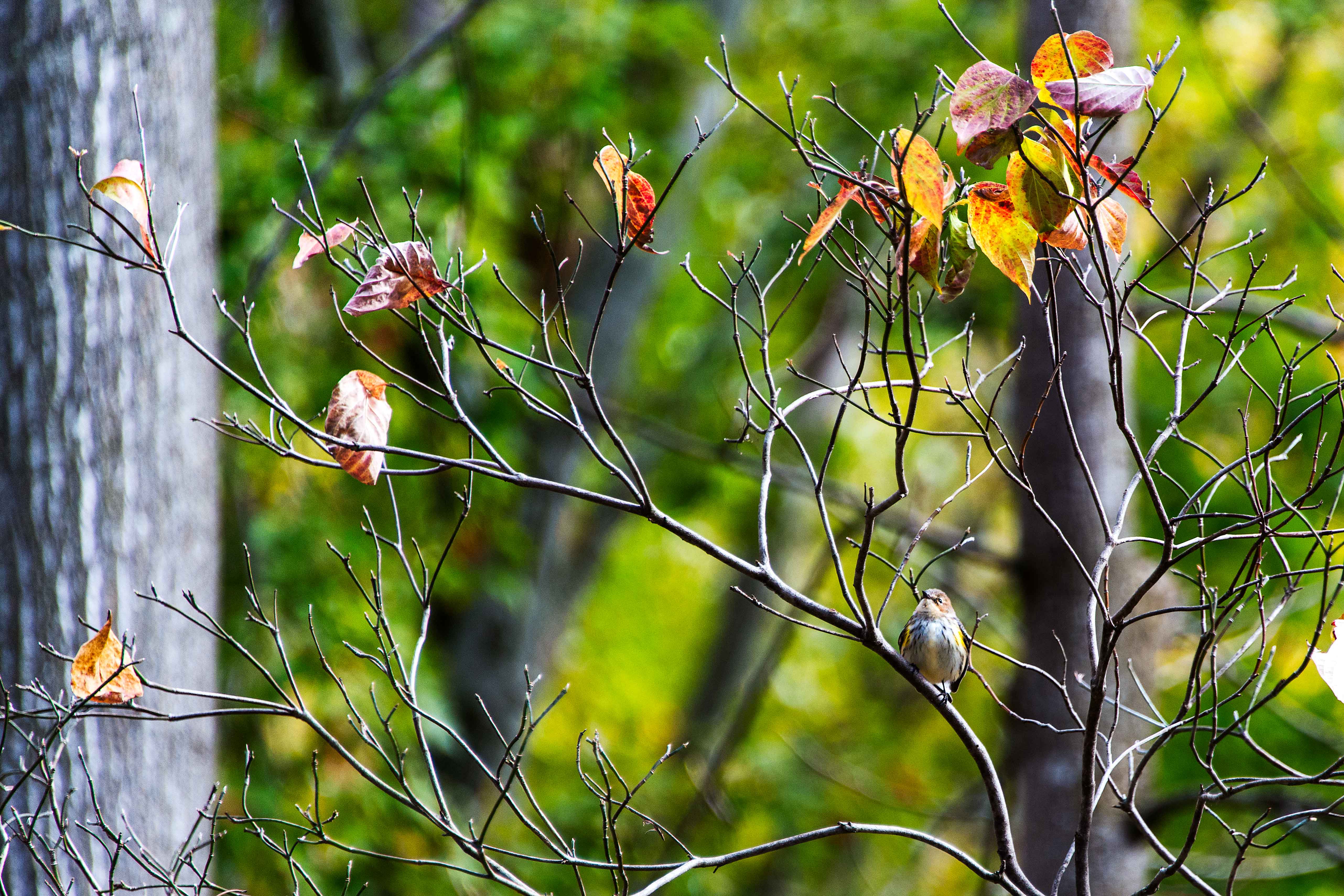 Shortly after leaving the boardwalk, I heard small birds high in the very tall trees. I could see a small bird darting from branch to branch, never sitting long in any one spot–not longer than a couple seconds. Each time it would land, I would quickly realign myself and camera, and occasionally get off a shot.