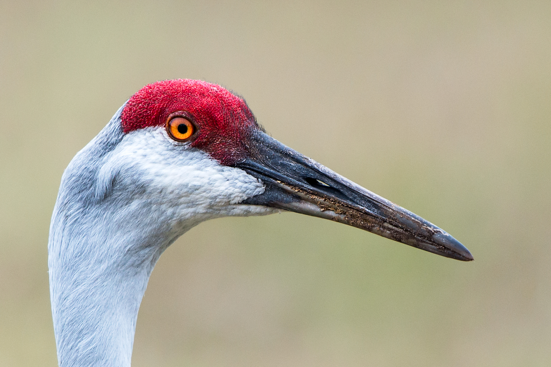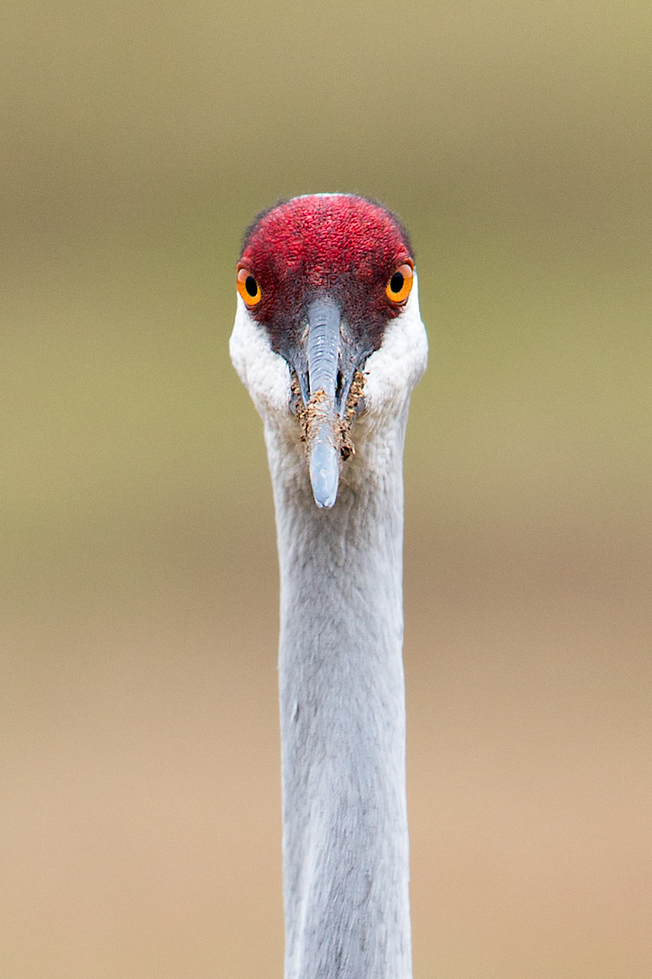 The above images are of three different cranes. In the first two images, the cranes’ long beaks are covered in dirt and other debris. They had not cleaned their beaks after feeding (and before posing for me). The third crane is more neat and proper (clean beak); therefore, I would guess it would be a female. Their sex is not distinguishable, other than by size, with the males being a little larger. In Florida, Sandhill Cranes are protected and, if killed, carry a very high fine. However, that is not the case in other states, which allow them to be hunted. Hard to imagine.