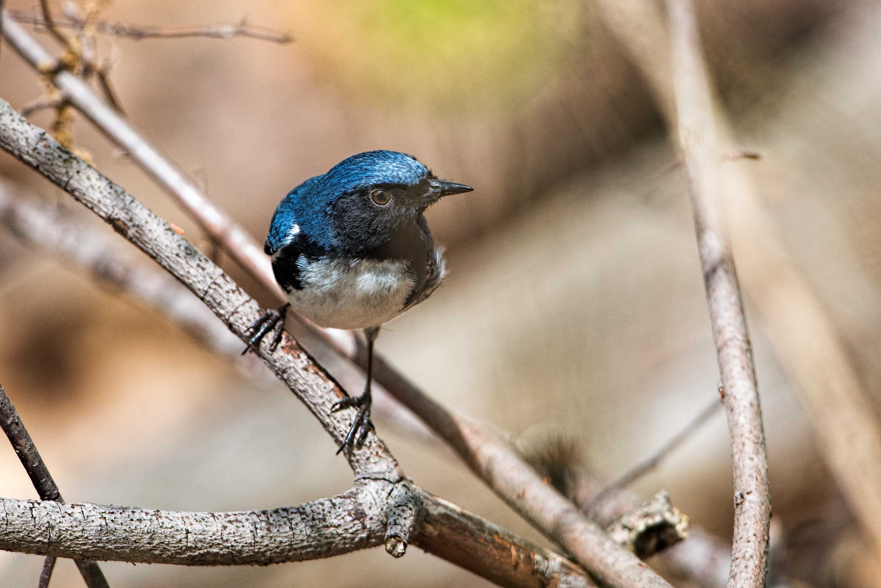 The next two images are of Black-throated Blue Warblers. These warblers are very territorial and breed in deciduous and mixed woodlands. They build their nests in thick shrubs.