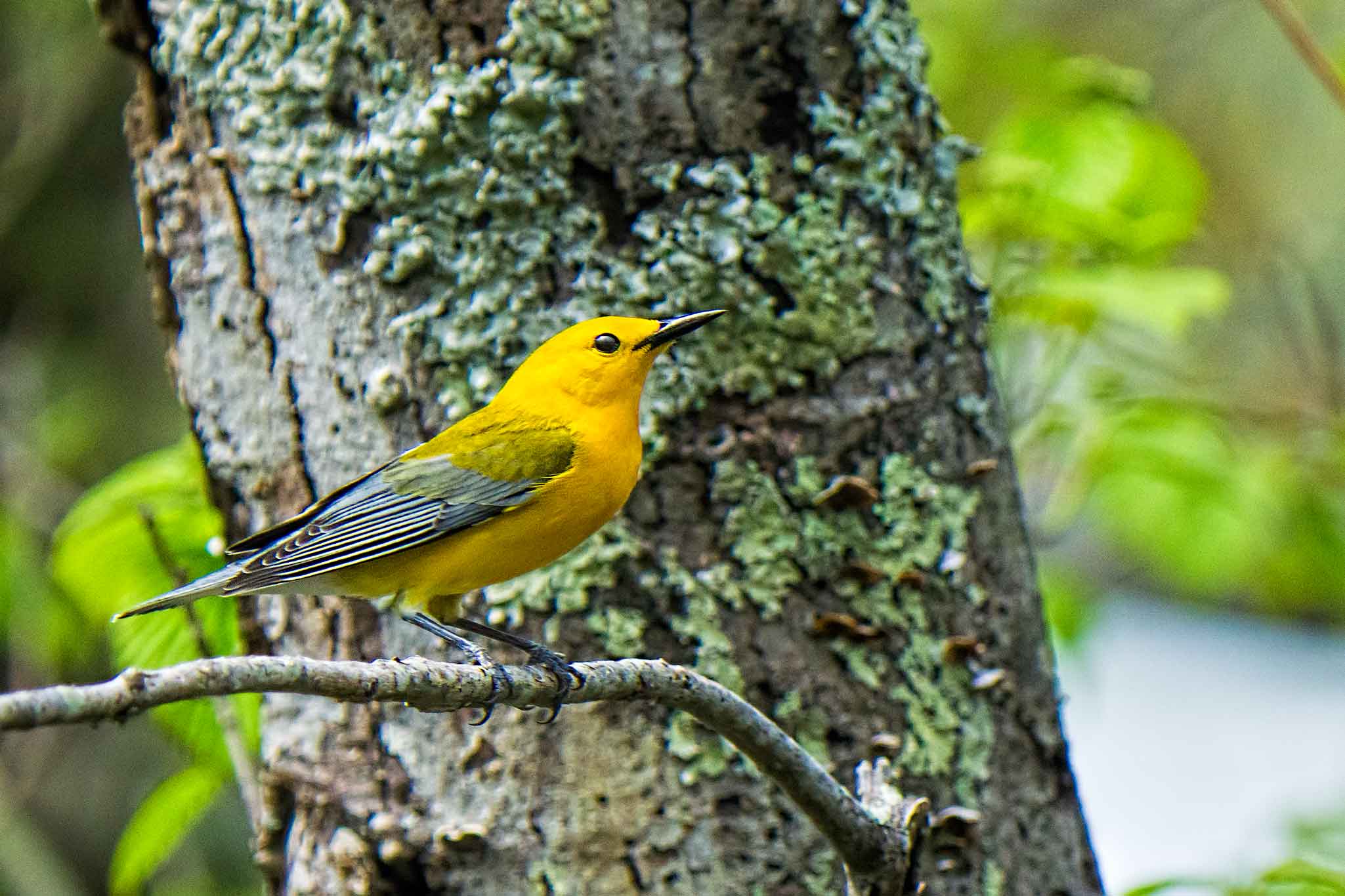 Yellow-Warbler-with-InsectThe following images are of Prothonotary Warblers. They live primarily wooded swamplands. They are one of two warblers that nest in tree cavities. They get their name “Prothonotary” from the Roman Catholic church, whose robes were bright yellow.