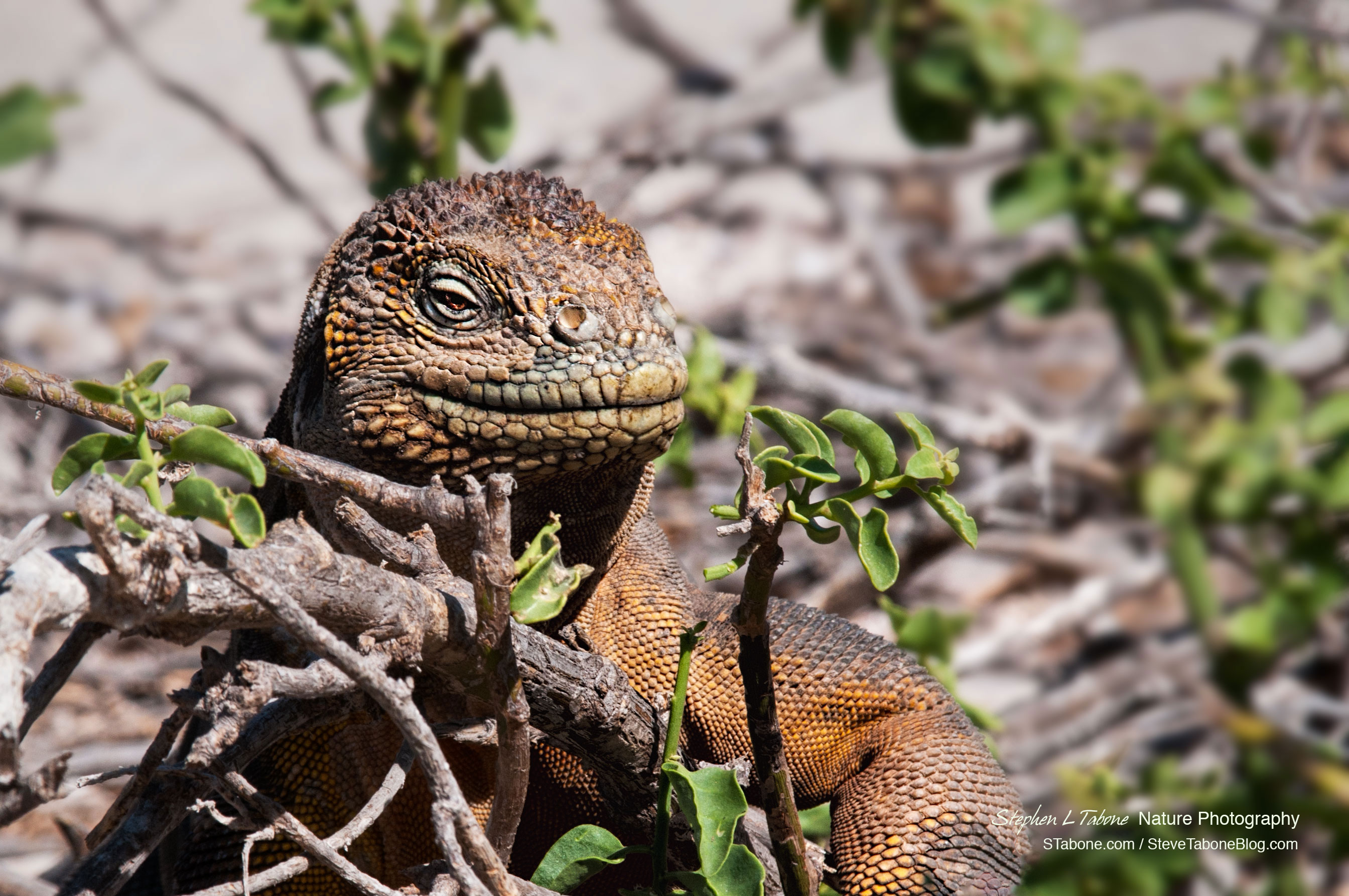 Besides the incredible views, Santiago is known for land iguanas, and it did not take long after landing on the island to locate the first iguana. The land iguanas looked very different from the many marine iguanas that I had seen on other islands and clearly looked prehistoric. The above photo is my favorite iguana image. I shot it at eye level and caught the iguana looking at the camera with a grin.